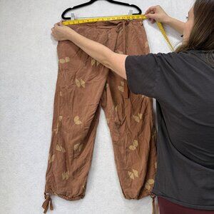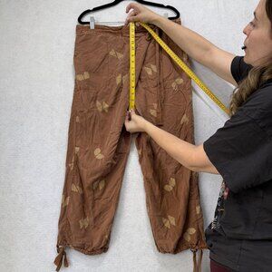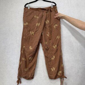 Pilcro Anthropologie Pants Womens 8 Brown Leaf Print Cropped Tie Waist Capri