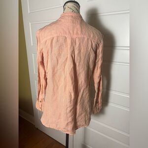 Pilcro Anthropologie Peachy Pink Placket Linen Ruffle Button Down Blouse XXS