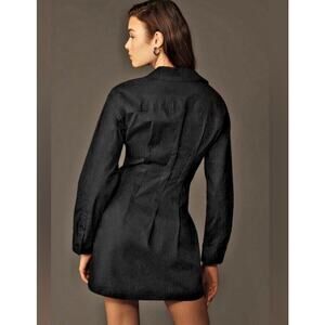 Pilcro Anthropologie Pintuck Mini Button front long sleeve shirt dress black LP