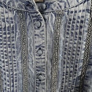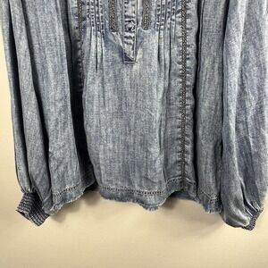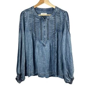 Pilcro by Anthropologie Blue Chambray Pop Over Blouse Shirt Top in Size S
