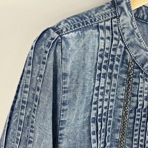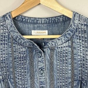 Pilcro Anthropologie Pintucked Norah Chambray Pop Over Blouse Shirt Top S