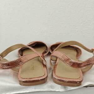 Pilcro Anthropologie Rose Gold Metallic Woven Leather Buckle Flats Size 10