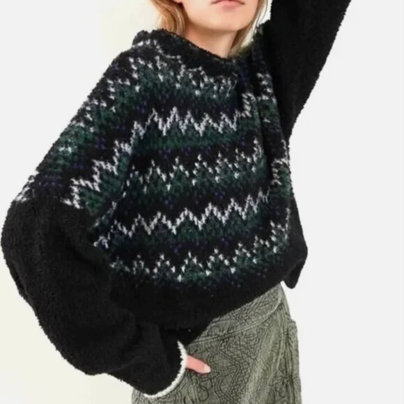 Pilcro Anthropologie Selene Zig Zag Sweater Navy Blue Green Oversized Womens Med