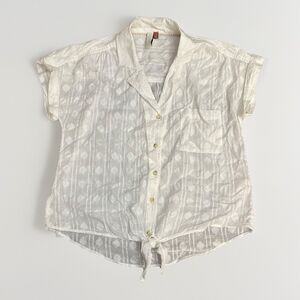 Pilcro Anthropologie Size Small White Boho Button Down Tie Waist Shirt