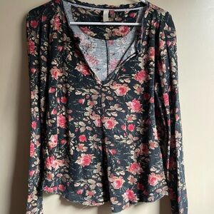 Pilcro Anthropologie Split-Neck Blouse Top Floral Printed Pullover Medium