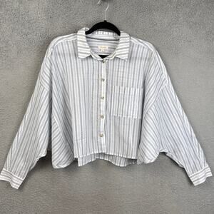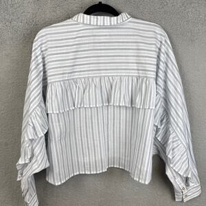 Pilcro Anthropologie Striped Ruffle Button Up Shirt Relaxed Boxy Fit Cropped M