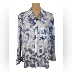 Pilcro Anthropologie The Cate Tie Dye Embroidered Button Down Shirt Size LP