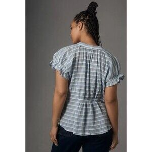 Pilcro Anthropologie The Tatum Flutter-Sleeve Blouse Shirt Top Striped S 277864