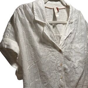 Pilcro Anthropologie White The Cami Surf Blouse Woven 100%Cotton Sheer Large