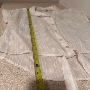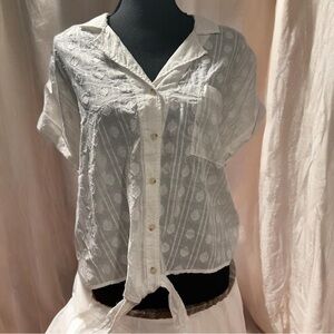 Pilcro Anthropologie Button Up T-Shirt Off-White TieWaist Woven 100%Cotton Large