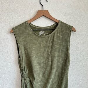 Pilcro Anthropologie Women's Bias Smocked Tee Green Tank Top T-Shirt XS Boho