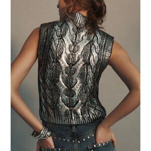 Pilcro Anthropologie Womens Cabled Foil Muscle Tank Sweater Size M Silver