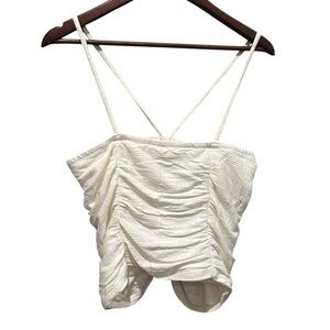 Pilcro Anthropologie Womens NWT Cream Ruched Ribbed Halter Size Medium