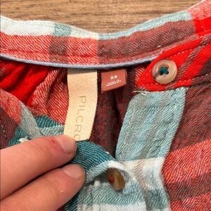Pilcro Anthropologie Womens XS Breezy Red Blue Oversized Plaid Button Down Shirt