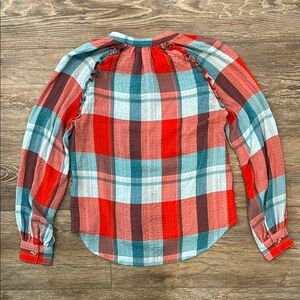 Pilcro by Anthropologie oversized flannel red and blue plaid shirt with button front.