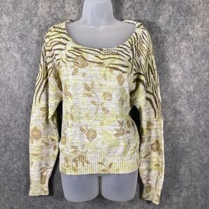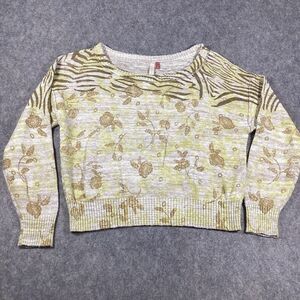 Pilcro Anthropologie Yellow Floral Print Size Small Ribbed Cuff Pullover Sweater