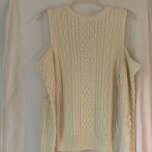 Pilcro Anthropologie ivory cable knit cold shoulder sweater SZ M