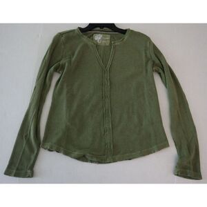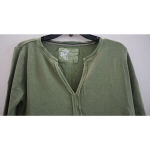 Pilcro Anthropologie Women's Sz S Moss Green Thermal Waffle Henley L/S Shirt