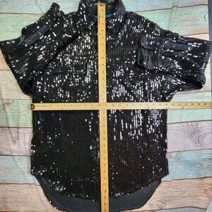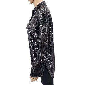 Pilcro Black Sequin Button-Up Shirt Womens L Long Sleeve Glam Party Top