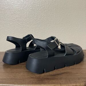 Stylish black sandals with a chunky sole. Adjustable strap for comfort. Perfect for casual wear.