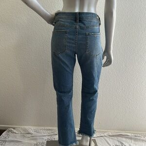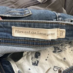 These Pilcro jeans feature a stunning array of pearl and rhinestone embellishments along the front lower legs, adding a touch of elegance to the classic blue denim. The ankle-length, cropped design offers a modern silhouette, perfect for showcasing your favorite footwear. With a light blue wash and a clean hem, these jeans effortlessly blend casual style with a dressy flair.