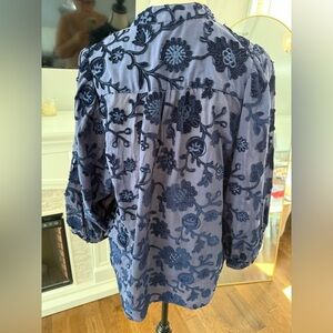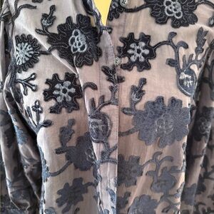 Elegant blouse with intricate floral embroidery. Button-up front. Perfect for casual or formal wear. Beautiful shirt