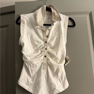 Stylish blue top with ruched detailing. Features a button-front design. Perfect for casual wear.