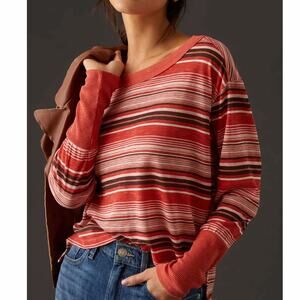 Pilcro Boxy Heritage Pullover Top Womens Size 2X Red Striped Oversized Tee