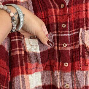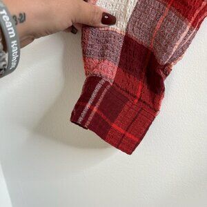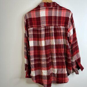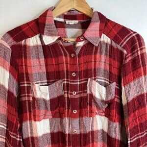 Pilcro Button Down Shirt Womens Sz S Red Plaid Western Textured Crinkle Boho