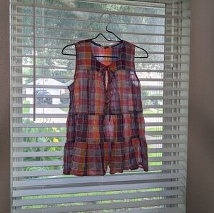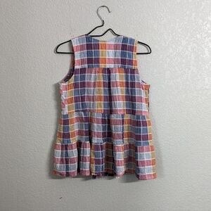 Pilcro By Anthropologie Multicolor Plaid Top Blouse Sleeveless Tiered Flowy MP