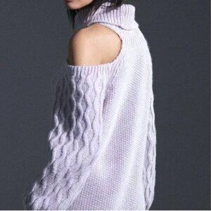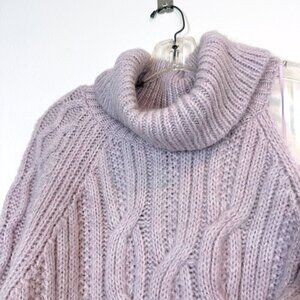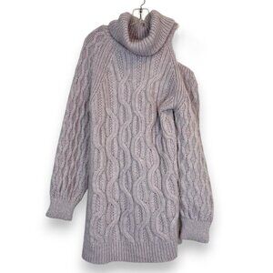 Anthropologie Pilcro Cable Knit Sweater Dress Turtleneck Purple Lavender Size Medium. This chic winter piece combines warmth and texture with its chunky cable knit design and trendy open-shoulder detail.
