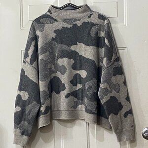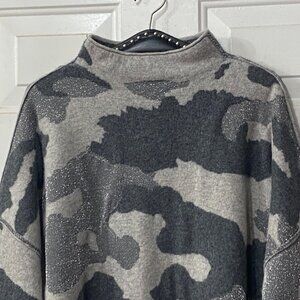 Pilcro Cashmere Sz XL Oversize Sweater Pullover Mock-Neck Camo Gray