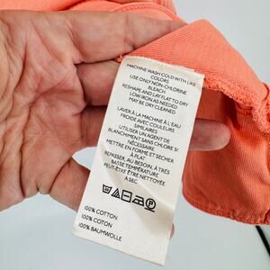 This Pilcro size 1X short sleeve T-shirt comes in a vibrant coral color with flattering stitched pleats down the front for added shape. Made from soft cotton, it’s a comfortable yet stylish piece perfect for layering or wearing solo. Relaxed fit with round neckline.