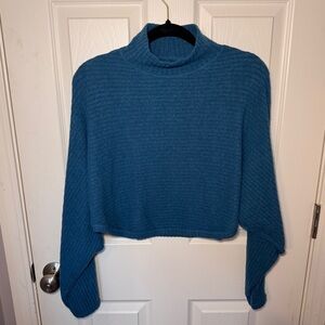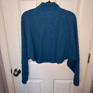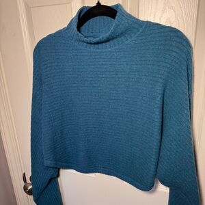 Teal ribbed turtleneck batwing pullover from Pilcro (Anthropologie). Cropped length. Very soft.