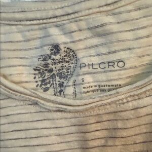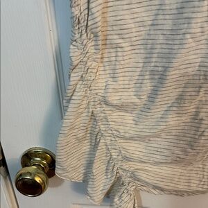 Chic muscle tee with subtle cream and gray stripes. Perfect for casual outings.