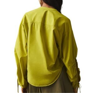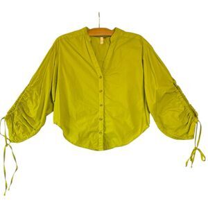 Pilcro Drawstring Poplin Blouse Lime Green Button-Up Ruched Sleeve size XXS Preppy