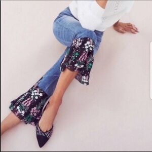 Anthropologie Pilcro Embroidered Flared Floral Tulle Jean