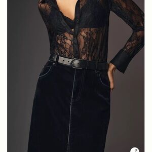 Pilcro Flocked velvet Black Denim Maxi Skirt