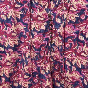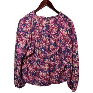 Pilcro Floral Button-Front Peasant Blouse Boho Style Womens Small 100% Cotton