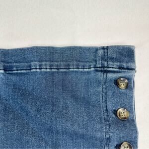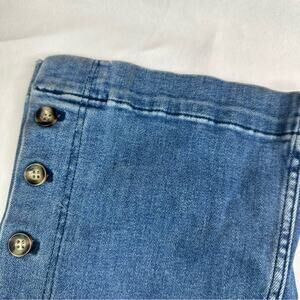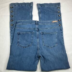 Item in Excellent Preowned Condition. Cotton blend, Slight Flared, Accent buttons up leg sides, Boho Festival Jean style, Some fading could be factory distressing. PLEASE SEE PHOTOS. Measurements taken laying flat:
