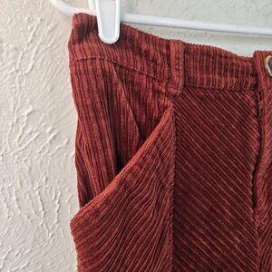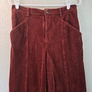 Pilcro and The Letterpress by Anthropologie High Rise Wide Leg Corduroy Pants Sz 28 Brick Red Ribbed Cropped Trousers (H562)