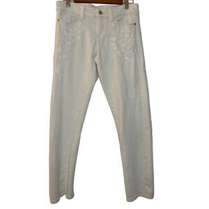 Pilcro Hyphen Floral Embroidered Straight Leg Jeans Size 26 White Stretch Flaw