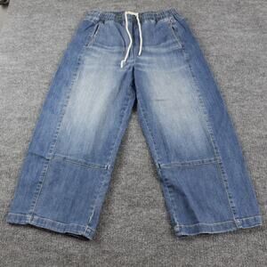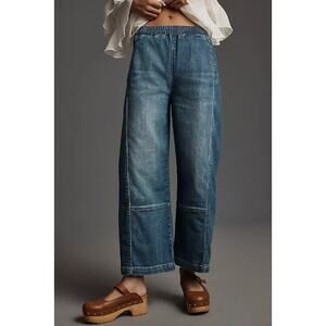 Pilcro Jean Medium The Izzie Relaxed Pull on Barrel Leg Blue Denim Casual Boho