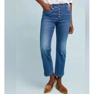 Pilcro Jeans Womens 31x26 Blue High Rise Flare Crop Button Fly Anthropologie