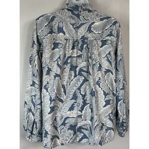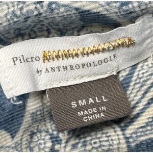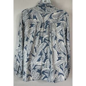 Pilcro and the Letterpress Women’s long sleeve light corduroy texture blouse size Small. Button down. Buttoned cuffs with paisley leaf print in blue and white. In excellent condition. Oversized.