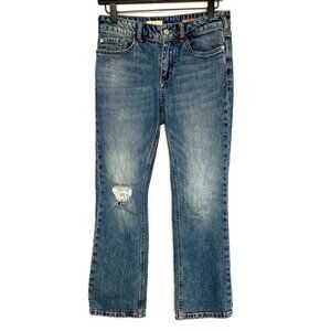 Tags: 90s Y2K retro vintage inspired boyfriend relaxed classic casual everyday pants weekend cute trendy blue anthropologie rip hole tear crop cropped