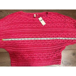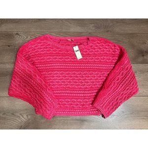 Pilcro NWT Pink Cropped Fisherman Cable Knit Boat Neck Sweater M