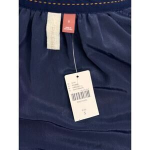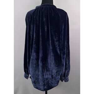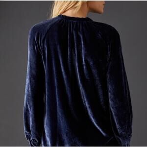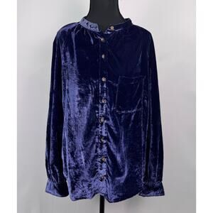 Pilcro velvet button-up shirt women’s small, Anthropologie Pilcro navy blouse NWT, blue velvet long sleeve top, mandarin collar shirt, soft luxe velvet blouse, elegant holiday top, Pilcro Anthropologie collection, plush navy velvet button down.