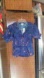 Adorable navy dress with pink floral accents buttondown top. Features charming puff sleeves.