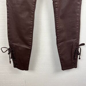 Pilcro Pants 26 Womens Plum Burgundy Coated Skinny Lace Up Ankle Jeans Mid Rise